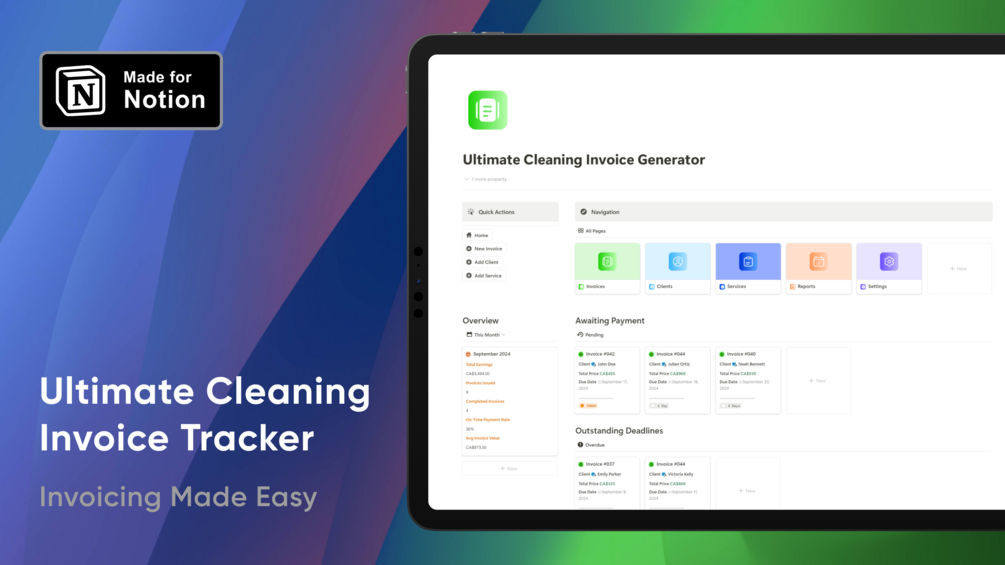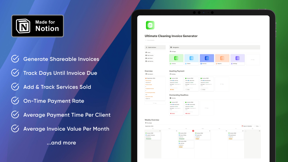 Introducing the Ultimate Cleaning Invoice Tracker designed to enable cleaners to generate shareable invoices with a checkout button to easily redirect your clients to a platform of your choice!